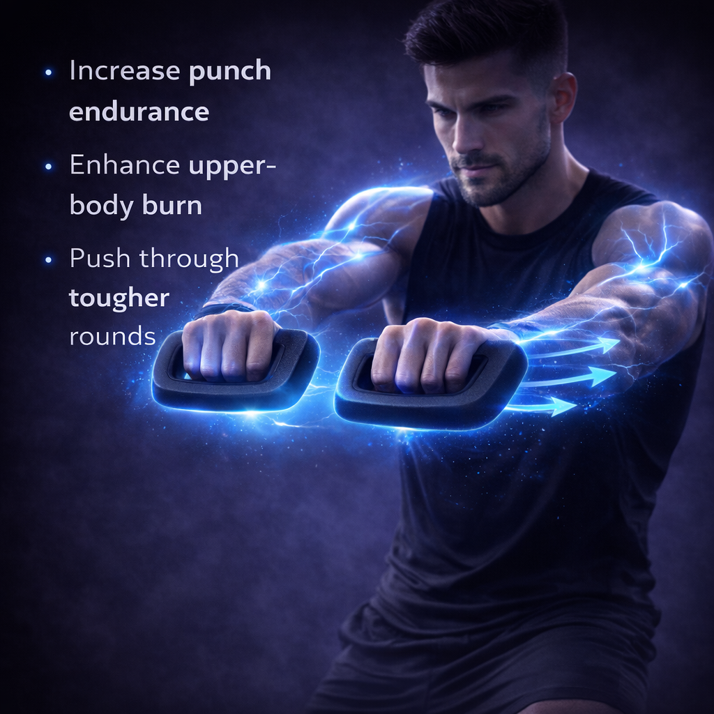 Add lightweight resistance to boxing-style cardio helping you boost intensity, build punch endurance, and stay sharp through every set.